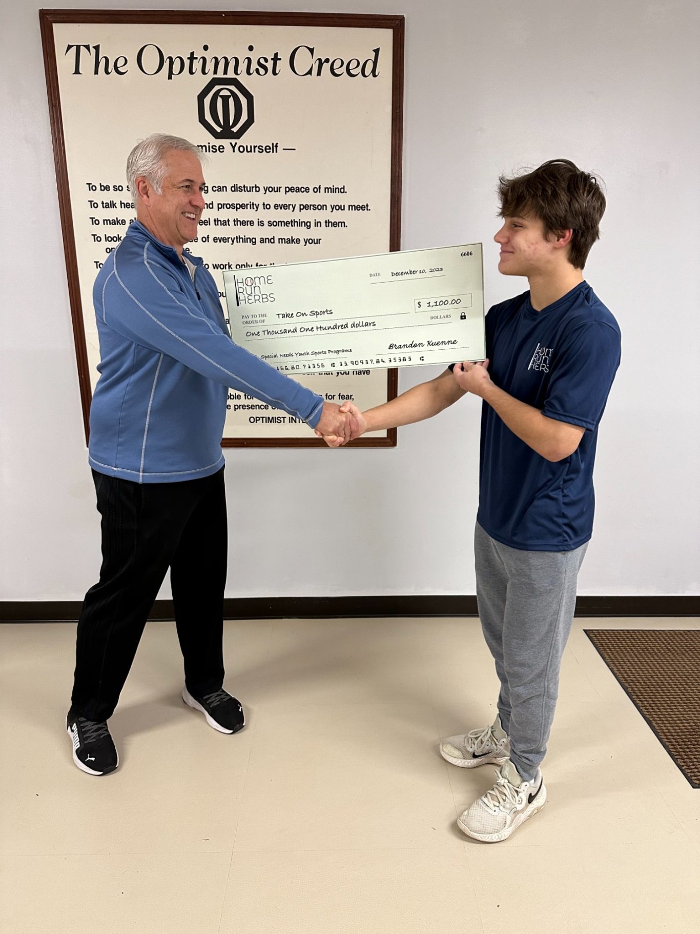 I recently have had the opportunity to make my first large donation, something that would be impossible without the amazing support I have received from our customers and donors. I would like to thank the Take On Sports leadership for the opportunity to make this donation, and I look forward watching the program thrive in the future!